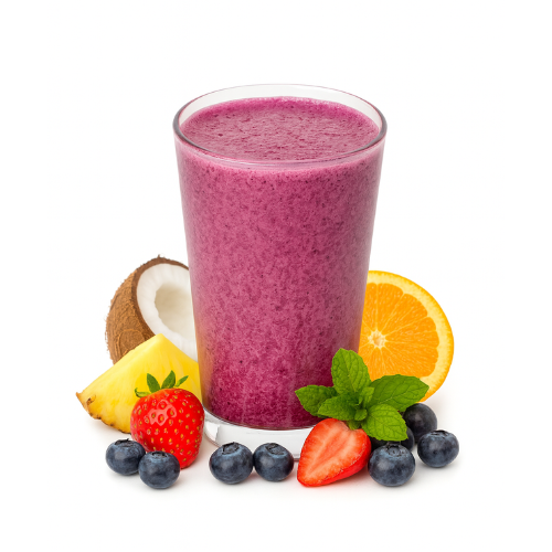 ananas, truskawki, kolagen, mleko kokosowe, jogurt, liofilizowany proszek z truskawek, pomarańcza, jabłko